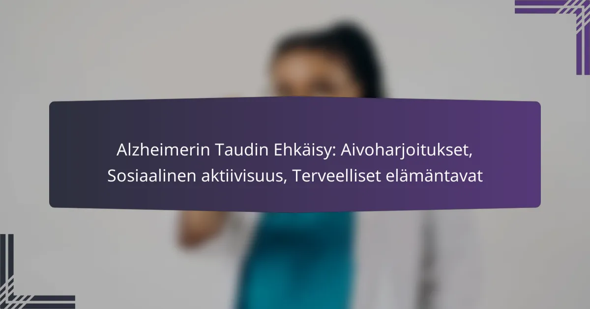 Alzheimerin taudin ehkäisyssä keskeisiä käytäntöjä ovat aivoharjoitukset, sosiaalinen aktiivisuus ja terveelliset elämäntavat. Nämä elementit yhdessä voivat edistää aivojen terveyttä ja vähentää riskiä sairastua. Oikeat strategiat voivat parantaa kognitiivista toimintaa ja elämänlaatua.