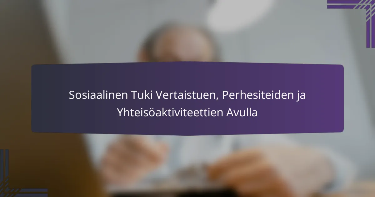 Sosiaalinen tuki koostuu tärkeistä elementeistä, kuten vertaistuesta, perhesiteistä ja yhteisöaktiviteeteista, jotka yhdessä edistävät hyvinvointia ja tarjoavat apua erilaisissa elämäntilanteissa. Vertaistukiryhmät mahdollistavat kokemusten jakamisen ja tuen saamisen samankaltaisista haasteista kärsiviltä, kun taas vahvat perhesiteet tarjoavat sekä emotionaalista että käytännön apua, vähentäen eristyneisyyden tunnetta. Yhteisöaktiviteetit puolestaan luovat mahdollisuuksia sosiaaliseen vuorovaikutukseen ja verkostoitumiseen, mikä rikastuttaa elämää ja tukee sosiaalista hyvinvointia.